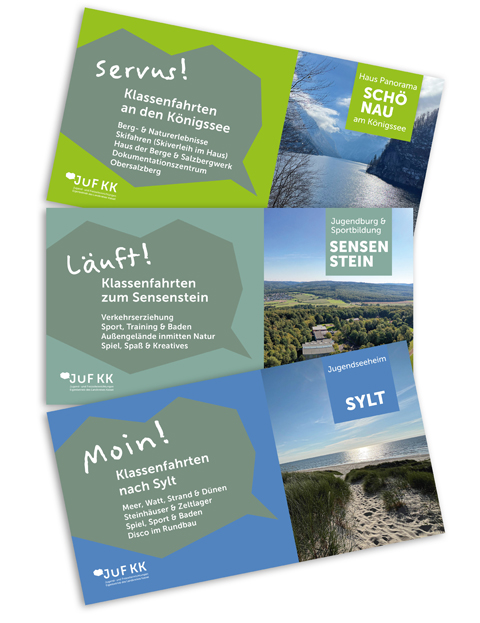 Diverse Infotafeln mit Submarke und Claim, eine Vignette zum 75 -Jährigen Jubiläum mit Aufklebern, Postkartenschuber mit historischen Motiven, diverse Imagepostkarten , Roll-ups und weitere Printmedien wurden entwickelt und ließen das Jugenseeheim zum Jubiläum in frischem, zeitgemäßen Glanz erstrahlen.
